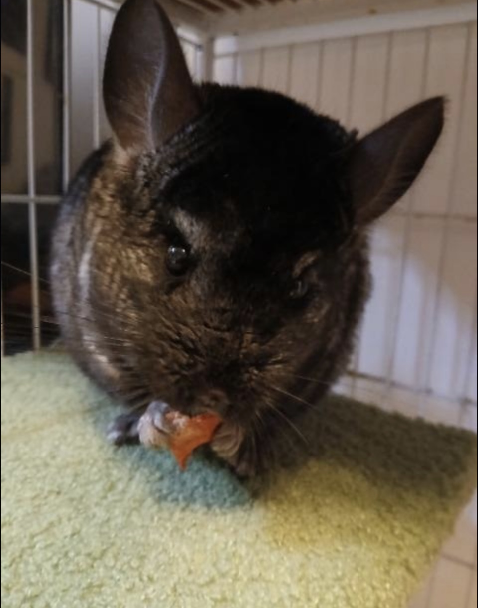 Cuddly, gentle, and proudly in charge of quality control, Pippin is the chin who started it all. He’s currently “learning the ropes,” which mostly means supervising cage cleanings, demanding attention, and reminding us that every crinkle of a bag might contain snacks. Favorite treats? Bee pollen, raisins, Cheerios… honestly, Pippin has never met a treat he didn’t like. Fun fact: He’s the chin who reignited our passion for chinchillas — and inspired Pippin’s™ wellness sprinkles. Mochi — Black Standard, 4 years old Mochi is our soft, snuggly cuddlebug. If there’s a lap or a cozy blanket around, he’s already claimed it. He’s a gentle soul with a sweet heart — but don’t let that fool you. The moment he hears a treat bag crinkle, he moves faster than physics should allow. His top favorites: goji berries and oat groats. Simple, crunchy, and absolutely Mochi-approved. Fun Fact: Mochi is trained to come when fingers are wiggled, he also knows that means that he's about to be picked up. He climbs onto your arm if you put it next to the cage and have a treat in your hand. He is a gentle soul, and we are smitten with him!!!!!! ⸻ More chins coming soon…