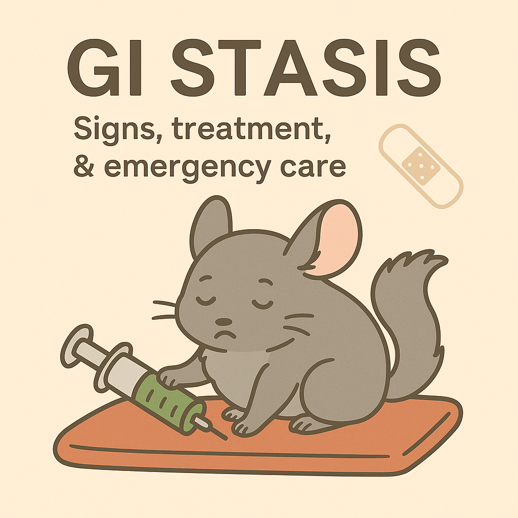 Why it happens, what to do, and when it’s an emergency. ![]() If a chinchilla stops eating or stops pooping, it can quickly become life-threatening. This condition is often called GI Stasis, ileus, or simply not eating. The sooner treatment starts, the better the chances of recovery. ⸻ ✅ Signs of GI Stasis Call an exotic vet if you notice: • Not eating hay, pellets, or treats • No poop or very tiny poop • Belly looks tight, swollen, or painful • Hunched posture or hiding • Low energy, no play • Teeth grinding (pain) • Drooling or refusing to chew • Sitting in a corner and not moving • Drinking less water • Sudden weight loss If your chin stops eating for 12 hours, it’s an emergency. ⸻ ✅ Why GI Stasis Happens Chinchilla digestive systems are designed to move constantly. When that movement slows or stops: ✔ Gas builds up ✔ Pain increases ✔ Appetite disappears ✔ Poop stops ✔ More gas builds ✔ Condition worsens Common causes include: • Dental problems (most common trigger) • Pain or illness • Stress or fear • Heatstroke • Respiratory infection • Sudden diet change • Too many sugary treats • Low-fiber diet • Lack of hay • Swallowing hair or foreign material • Parasites or infection Sometimes you never find the cause — the important part is fast treatment. ⸻ ✅ Emergency Action Steps 1. Call an exotic vet immediately. Do not “wait and see.” Waiting can be deadly. 2. Offer water and hay. Even a few nibbles matter. 3. If you have Critical Care or Carnivore Care, start syringe feeding (only if your vet approves or you’ve been instructed before). 4. Do not force liquid if they struggle to swallow. This risks aspiration (liquid in lungs). 5. Keep warm, calm, and quiet. ⸻ ✅ How Vets Treat GI Stasis An exotic vet may provide: • Pain medication (critical!) • Fluids under skin or IV • GI motility drugs • Antibiotics if infection is suspected • Dental exam for underlying issues • X-rays to look for blockage • Oxygen support if dehydrated or weak If there is a physical blockage, surgery or intensive care may be required. ⸻ ✅ Home Care (Only After Vet Visit) • Syringe feed Critical Care • Offer clean water often • Keep warm but not hot • Quiet, low-stress environment • Weigh daily • Track poop Never give gas drops, laxatives, or human medicine unless a vet instructs you — some can make things worse. ⸻ ✅ Recovery Signs • Eating hay on their own • Normal-sized poop returns • More energy • Drinking regularly • Seeking treats again Poop returning is one of the best signs of recovery. ⸻ ✅ When It’s Critical Go to an emergency vet if: • No poop for 12+ hours • Refusing syringe feeding • Labored breathing • Limp, cold, or unable to stand • Bloated and painful belly • They stop drinking • Pale or blue gums Chinchillas decline fast — minutes matter in advanced GI stasis. ⸻ ✅ Prevention While not all cases can be prevented, you can lower the risk: ✔ Unlimited hay every day ✔ High-quality plain pellets ✔ Safe chew toys and wood ✔ Avoid sugary or fruity treats ✔ Introduce new foods slowly ✔ Clean, cool environment ✔ Reduce stress and loud noises ✔ Routine dental checks ✔ Weigh weekly Early detection saves lives. ⸻ ✅ The Honest Part Many chinchillas recover fully. Some need syringe feedings for days or weeks. Some have recurring episodes if dental disease or illness returns. A few do not survive severe stasis or blockage, even with treatment. This is not your fault. Chinchillas are fragile, and even perfect owners face medical emergencies. What matters is that you recognized something was wrong and fought for them. ⸻ ✅ If You’re Reading This Because Your Chin Is Sick You’re doing the right thing. You’re learning, paying attention, and trying to save them. Chinchillas don’t need perfect owners — they need caring ones. And you’re one of them. |